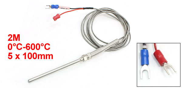 Product Name Thermocouple Probe Type K Type Fork Pin Number 2 Temperature Range 0°C-600°C Sensor Size 5 x 100mm/ 0.2" x 3.9" (D*L) Mounting Thread Dia 8mm/0.31" External Shield Material Metal Cable Length(Approx.) 2M / 6.6Ft Weight 48g Package Content 1 x Thermocouple Probe - Reviews