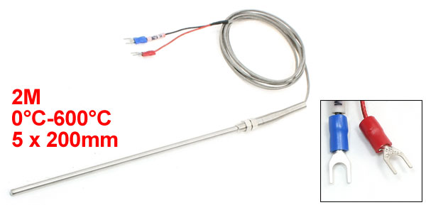Product Name Thermocouple Probe Type K Type Fork Pin Number 2 Temperature Range 0°C-600°C Sensor Size 5 x 200mm/ 0.2" x 7.9" (D*L) Mounting Thread Dia 8mm/0.31" External Shield Material Metal Cable Length(Approx.) 2M / 6.6Ft Weight 52g Package Content 1 x Thermocouple Probe - Reviews