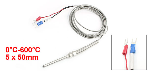 Product Name Thermocouple Probe Type K Type Fork Pin Number 2 Temperature Range 0°C-600°C Sensor Size 5 x 50mm/ 0.2" x 2" (D*L) Mounting Thread Dia 8mm/0.31" External Shield Material Metal Cable Length(Approx.) 2M / 6.6Ft Weight 45g Package Content 1 x Thermocouple Probe - Reviews