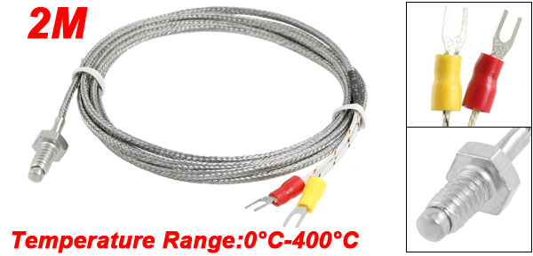 Product Name Thermocouple Probe Type K Type Fork Pin Number 2 Temperature Range 0°C-400°C Sensor Size 4 x 25mm/ 0.16" x 1" (D*L) Fork Pin Size 9 x 5mm/ 0.4" x 0.2"(L*W) Pin Spacing 4mm/ 0.2" Thread Diameter 6mm/ 15/64" External Shield Material Metal Total Length(Approx.) 2M / 6.6 Ft Color Silver Tone Weight 30g Package Content 1 x Earth Thermocouple Probe - Reviews