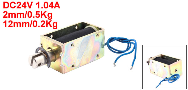 Product Name Solenoid Electromagnet Rated Voltage & Current DC24V 1.04A Power 25.04W Action Form Pull Type Stroke & Force 2mm/0.5Kg; 12mm/0.2Kg
