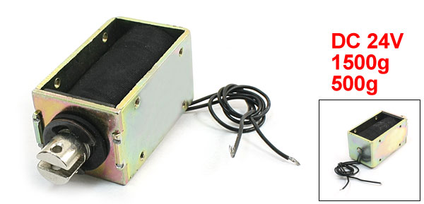 Product Name DC Solenoid Electromagnet Rated Voltage & Current DC 24V 0.26A Power 6.39W Action Form Pull Type Force Stroke: 2mm 1500g/3.3lb