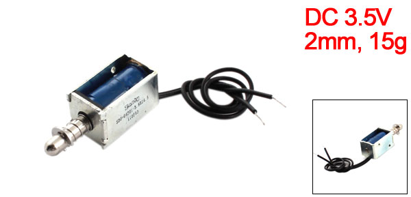 Product Name DC Solenoid Electromagnet Model 0420L-3.5B24.5 Rated Voltage & Current DC 3.5V 0.08A Power 0.3W Stroke & Force 2mm, 15g Action Form Pull Type Connection Rates 50% Body Size 20 x 12 x 11mm/ 0.8" x 0.47" x 0.43"(L*W*H) Plunger Size 22 x 4mm/ 0.87" x 0.16"(L*Max.D) Cable Length 12cm/ 4.7" Material Metal, Electronic Parts Net Weight 15g Package Content 1 x DC Solenoid Electromagnet - Reviews