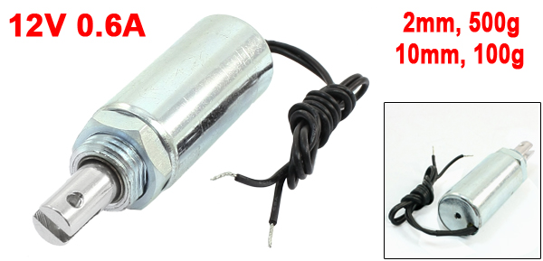 Product Name Tubular Solenoid Rated Voltage DC 12V 0.6A Power 7.2W Action Form Pull Type Force& Stroke 2mm, 500g