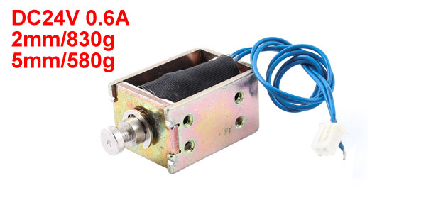 Product Name Solenoid Electromagnet Rated Voltage & Current DC24V 0.6A Power 14.4W Action Form Pull Type Stroke & Force 2mm/830g; 5mm/580g
