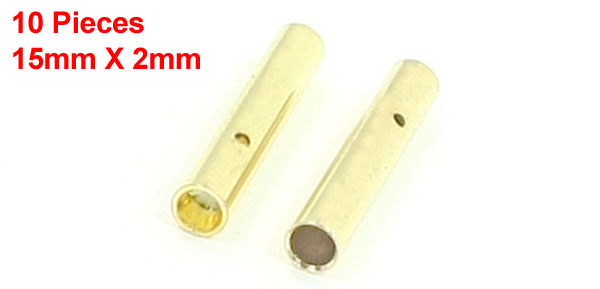 Product Name Bullet Plug Model No Y401 Material Metal Color Gold Tone Female Plug Length 15mm / 0.59" Inside Diameter 2mm / 0.078" Weight 5g Package Content 10 Pcs x Bullet Plug - Reviews