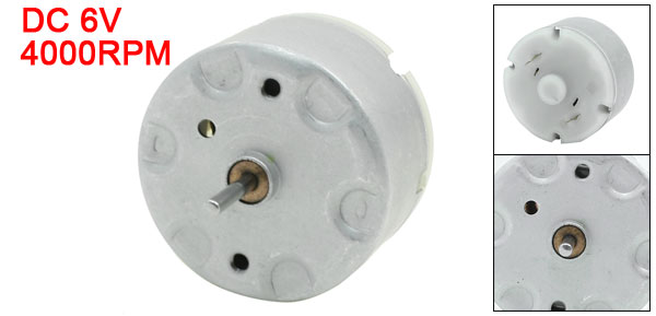 Product Name DC Motor Model No. RF500TB Working Voltage Range 3V-12V Rated Voltage DC 6V Speed 4000RPM Shaft Size(Each) 2 x 10mm/ 0.078" x 0.39""(D*L) Body Size 32 x 19mm/ 1.2" x 0.75"(D*H) Main Color Silver Tone Material Metal Net Weight 43g Package 1 x DC Motor - Reviews
