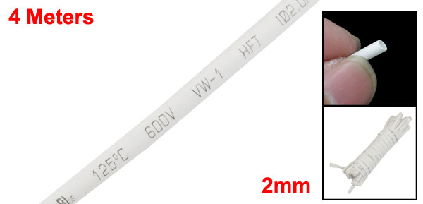 2mm Dia. White Polyolefin Heat Shrinkable Tube Shrink Tubing 4M