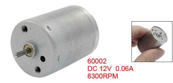 Product Name DC Motor Rated Voltage DC 12V Rated Current 0.06A Speed 8300RPM Shaft Diameter 2mm / 0.078" Shaft Length 10mm / 0.393" Body Diameter 24mm / 0.944" Total Length 45mm / 1.771" Main Color Silver Tone Material Metal Weight 52g Package 1 x DC Motor - Reviews