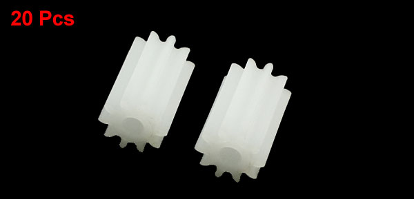 Details2mm x 6mm Plastic Motor Transmission Spindle Gear 20 Pcs for RC Model  Product Name Plastic Spindle Gear Model 10-2A Type Single Gear Fit for for DIY Toys Motor Reduction Box Teeth 10 Modulus 0.5 Diameter 6mm/0.24" Height 9mm/0.75" for Shaft Dia 2mm/0.08" Material Plastic Color White Weight 5g Package Content 20 Pcs x Plastic Spindle Gear