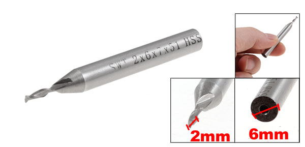 2mm x 6mm x 7mm x 51mm 2 Flutes HSS End Mill Milling Cutter Tool