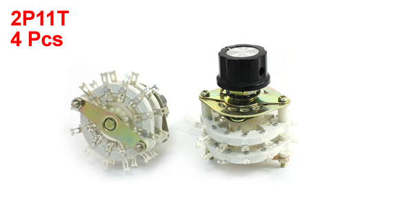 2P11T 2-Pole 11-Position 10mm Dia Thread 6mm Shaft Selector Rotary Switch 4Pcs