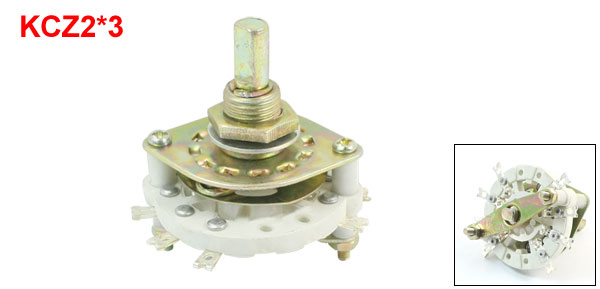 Product Name Rotary Switch Model KCZ2*3 Material Metal, Plastic Dimensions(knob not included) 42 x 41mm / 1.6" x 1.6"(Max.D*H) Fit Mounting Hole Diameter 10mm / 0.4" Shaft Diameter 6mm/0.24" Pin Number 8 Contact Type 2 Pole 3 Position Total Weight 31g Package Content 1 x Rotary Switch - Reviews