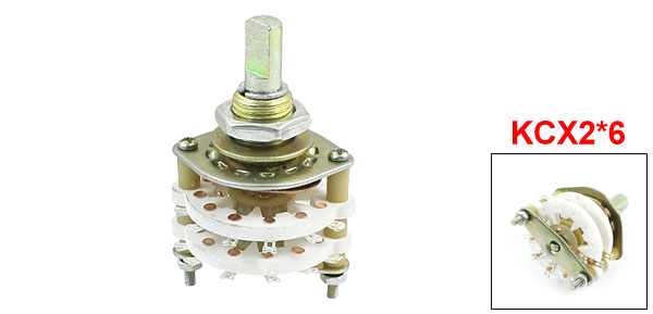 Product Name Rotary Switch Model KCX2*6 Material Metal, Plastic Dimensions(knob not included) 30 x 42mm / 1.2" x 1.7"(Max.D*H) Fit Mounting Hole Diameter 10mm / 0.4" Shaft Diameter 6mm/0.24" Pin Number 14 Contact Type 2 Pole 6 Position Total Weight 26g Package Content 1 x Rotary Switch - Reviews