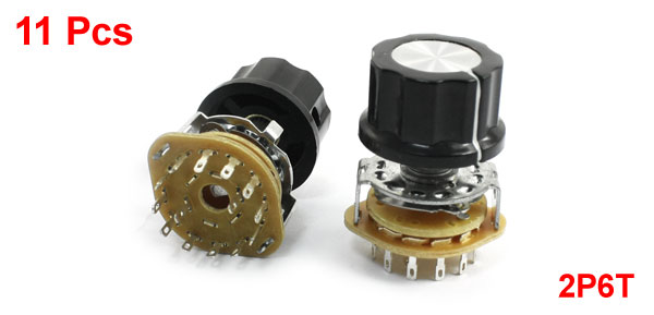 2P6T 2-Pole 6-Position 9mm Thread 6mm Knurled Shaft Selector Rotary Switch 11Pcs