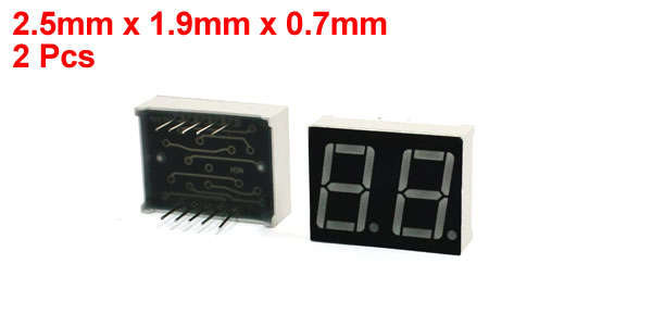 Product Name LED Digital Display Tube Digital Display 2 Digitals Emitted Color Red Pin Number 10 Pin Pitch 2mm/0.08" Size(Not Include Pin) 2.5 x 1.9 x 0.7mm/ 1" x 0.75" x 0.27" (L*W*H)