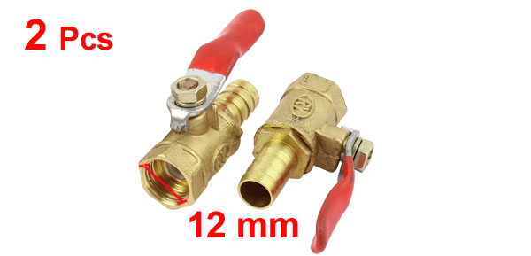 2Pcs 1/4BSP Female Thread to 10mm Hose Barb Red Lever Handle Brass Ball Valve