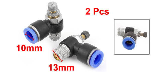 Product Name Pneumatic Speed Controller Inner Diameter (Blue End) 10mm / 0.4" Thread Outer Diameter 13mm / 1/4PT Total Size 43 x 40 x 19mm / 1.8" x 1.6" x 0.8" (L*W*T) Main Material Plastic, Metal Color Blue, Black, Silver Tone Net Weight 67g Package Content 2 x Speed Controller - Reviews