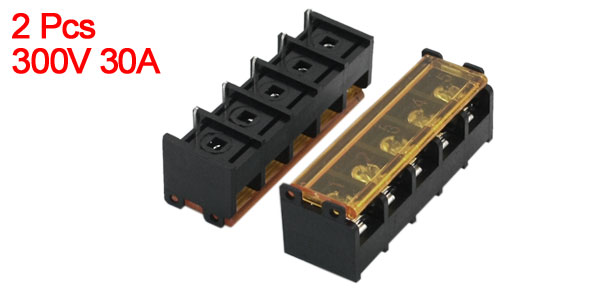 2Pcs 1 Row 5 Position Wire Connector Screw Terminal Barrier Block 300V 30A