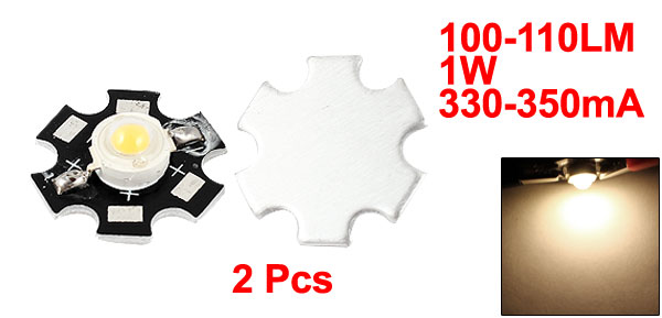 2PCS 100-110LM 1W Warm White Light LED Emitter Lamp Bead w Heat Sink Base