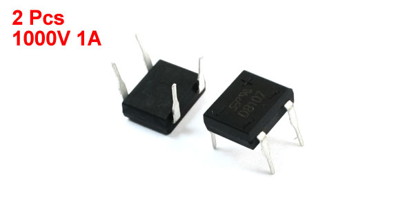 2Pcs 1000Volt 1A Single Phase PCB Mount Rectifier Bridge Black DB107G