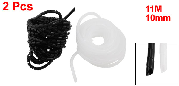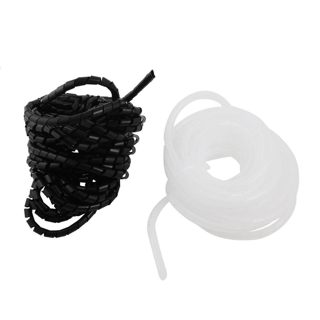 2Pcs 10mm Flexible Black White Wire Spiral Wrap Protective Sleeve Tube 36Feet
