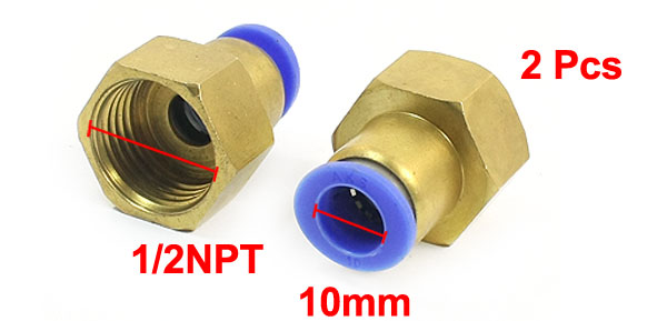 2Pcs 10mm Tube 1/2NPT Female Thread Dia Pneumatic Quick Fitting Coupler
