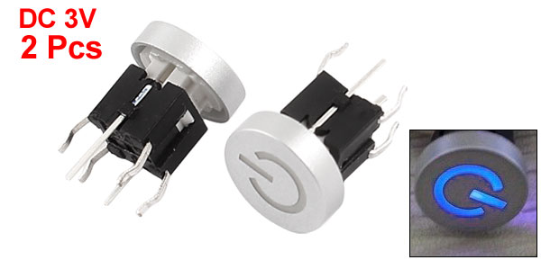 Product Name Tact Push Button Switch Light Voltage DC 3V Top Sign "Power Sign" Contact Type Momentary Pin Count 4 Total Size(Pin Not Include) 10 x 9mm/0.4" x 0.35" (D*H) Material Plastic, Metal Case Color Black, Red,White Light Color Blue Net Weight 2g Package Content 2 Pcs x Tact Push Button Switches - Reviews