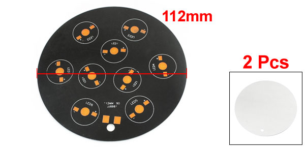 Product Name Aluminum PCB Circuit Board Fit for 9pcs x 1W/3W/5W LED Dia 112mm/4.4" Thickness 1.4mm/0.05" Mounted Hole Dia 5mm/0.2" Net Weight 60g Materials Aluminum Package Content 2 x Aluminum PCB Circuit Board - Reviews
