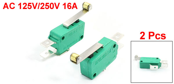 2pcs 125VAC 16A SPDT Long Hinge Roller Lever Limit Switch Microswitch Green