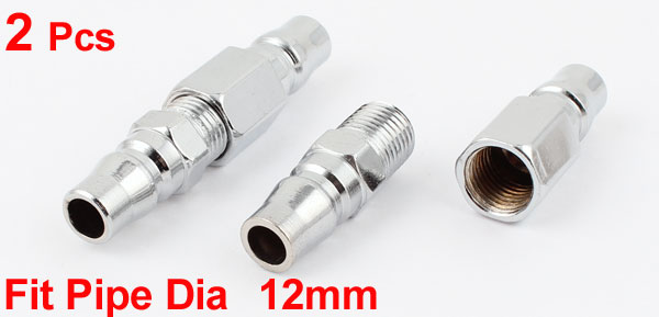 Product Name Air Quick Coupler Fluid Air Fit Pipe Dia 12mm/0.5" Overall Size 74 x 16mm / 3" x 0.55" (L*Max.D) Color Silver Tone Material Metal Net Weight 109g Package 2 x Air Quick Coupler - Reviews