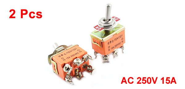 Details2Pcs 12mm Thread DPDT 6 Screw Terminal ON/ON Metal Toggle Switch AC 250V 15A  Main Color Orange Country of Manufacture CHINA Action Type Latching Terminal 6 Screw Terminals Material Metal Contact Type DPDT Total Size 33 x 20 x 58mm/1.3"x 0.8" x 2.3"(L*W*H) Product Name Toggle Switch Net Weight 74g Rated AC 250V 15A Package Content 2Pcs x Toggle Switch Position ON/ON Thread 12mm