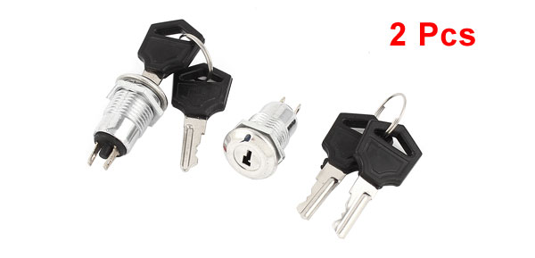 2Pcs 12mm Thread Panel Mounting 2 Positions ON OFF SPST Keylock Switch