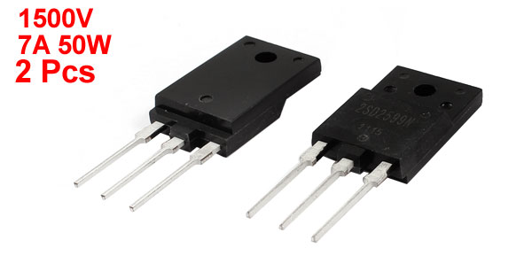 Product Name Triple Diffused Transistor Model No. 2SD2599 Mounted Type Through Hole Current 7A Voltage 1500V Power 50W Mounting Hole Diameter 3.5mm / 0.14" Pin Size 14 x 5mm / 0.55" x 0.2" ( L* Pitch) Total Size 43 x 15 x 5mm / 1.7" x 0.59" x 0.20" (L*W*H) Main Material Silicon Main Color Black, Silver Tone Weight 11g Package 2 x Tripple Difused Transistor - Reviews