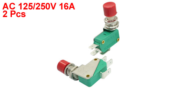2pcs 16A 125/250VAC NO+NC 3-Terminal Red Pushbutton AC DC Miniature Micro Switch