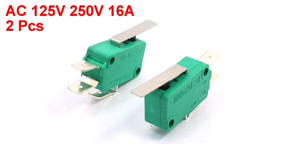 2Pcs 1NO 1NC Short Straight Hinge Lever Enclose Micro Switch Green 250VAC 16A