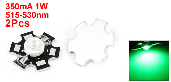 2pcs 1W 515-530nm Green Light LED Lamp Bead Emitter 50-60LM w Star Base