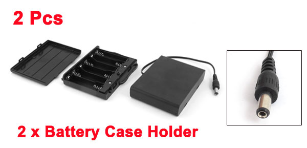 2Pcs 2.1 x 5.5mm Male Plug 6 Capacity 9V Plastic Case Box Holder for AA Battery