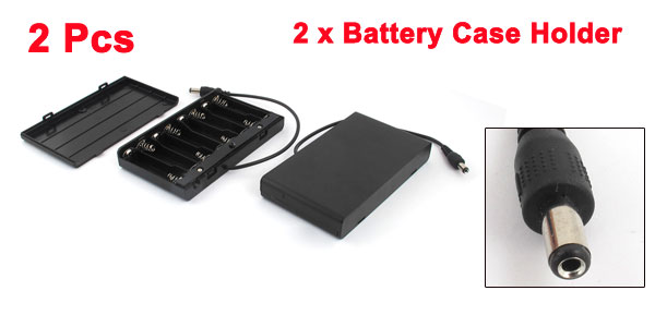 2Pcs 2.1 x 5.5mm Male Plug 8 Capacity 12V Plastic Case Box Holder for AA Battery