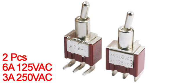 Product Name Toggle Switch Type SPDT Latching ON-ON Position 2 Voltage & Current 6A AC125V 3A AC250V Total Size 13 x 11 x 29mm/0.51" x 0.43" x 1.1"(L*W*H) Material Metal, Plastic Main Color Red, Silver Tone Weight 9g Package Content 2Pcs x Toggle Switches - Reviews