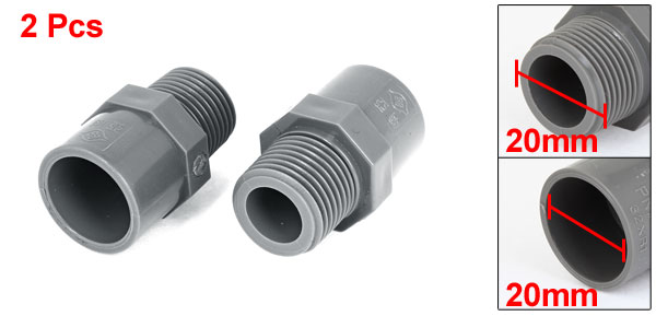 2PCS 20mm Male Threaded PVC Straight Water Hose Piping Connectors Coupler Gray