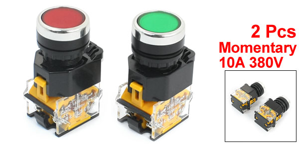 2pcs 22mm Panel Cutout Dia 10A 380V DPST Red Green Momentary Push Button Switch