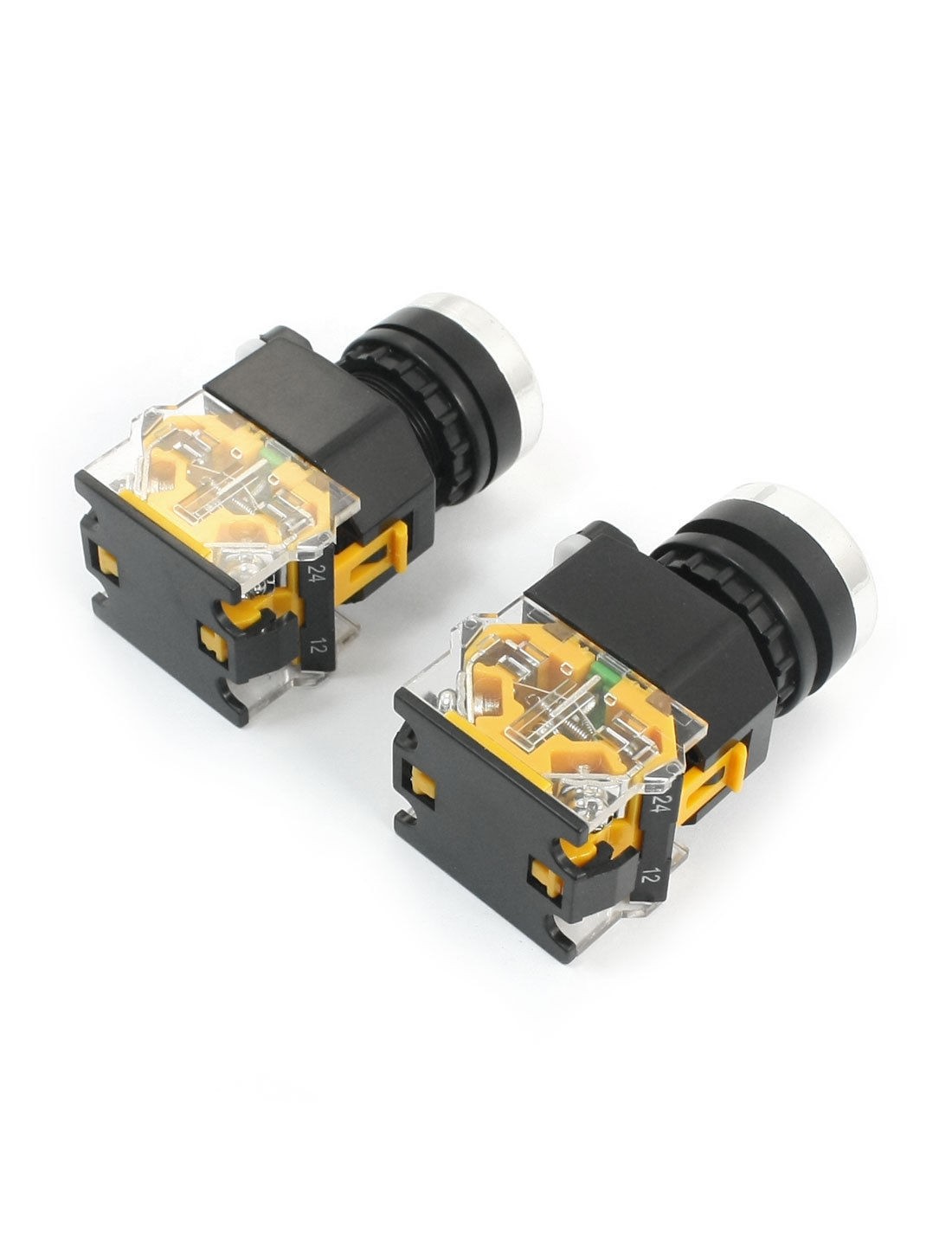 Product Name Push Button Switch Mode LA38-11 Contact Type 1NO 1NC (DPST) Action Type Momentary Ith 10A Ui 380V Terminal Quantity 4 Panel Cutout Diameter 22mm / 0.87" Fit Panel Max. Thickness 5mm / 0.2" Button Diameter 24mm/ 0.94" Total Size(Approx) 41 x 30 x 67mm / 1.6" x 1.2" x 2.6" (L*W*H) External Material Plastic, Metal Button Color Red, Green Net Weight 92g Package Content 2 x Push Button Switch - Reviews