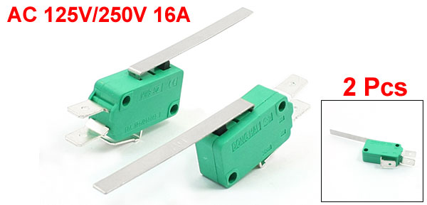 2Pcs 250VAC 16A SPDT Long Straight Hinge Lever Actuator Limit Micro Switch Green