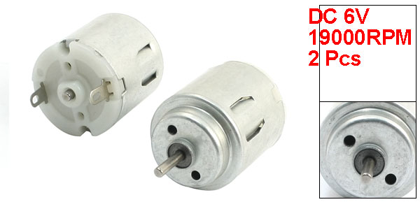Product Name DC Motor Rated Voltage DC 6V Speed 19000RPM Rated Current 180mA Pin Number 2 Shaft Diameter 2mm/0.078" Shaft Length 8mm/0.31" Body Diameter 21mm/ 0.83" Total Length(Not Included Pin) 38mm/0.15" Material Metal Weight 36g Package 2 Pcs x DC Motor  - Reviews