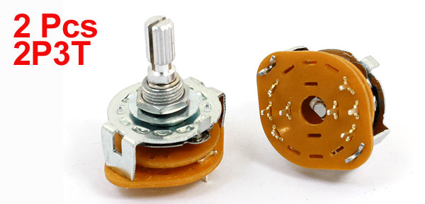 2Pcs 2P3T 2 Pole 3 Position 6mm Knurled Shaft Dia Band Selector Rotary Switch