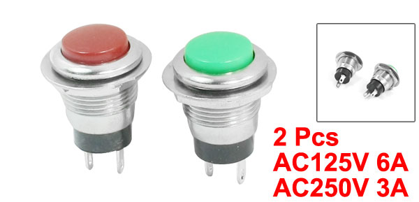 2pcs 2Pins 12mm Momentary SPST Red Green Push Button Switch AC125V 6A 250V 3A