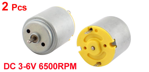 Main Color Silver Tone, Yellow Brand DMiotech Net Weight 57g Country of Manufacture CHINA Total Length 36mm/1.4" Rated Voltage DC 3-6V Package Content 2 x DC Motor Material Metal, Electric Parts Shaft Size 2 x 7mm/0.08"x 0.28"(D*L) Motor Size 24 x 27mm/0.94" x 1.1"(D*L) Rated Speed 6500RPM - Reviews