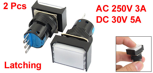 Cap Color White Switch Color Black, White Pin Number 3 Button Size 20 x 15mm/ 0.8" x 0.59" (L*W) Mounting Plate Thickness 8mm/ 0.31" Mounting Thread Dia. 16mm/ 0.63" Total Size 24 x 18 x 40mm/ 0.94" x 0.7" x 1.6"(L*W*H) Material Plastic, Electronic Parts Weight 16g Package Content 2 x Push Button Switch - Reviews