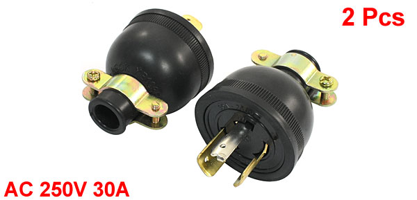 2Pcs 3 Pins Rewirable Power Cable Plug 250VAC 30A w Clamp